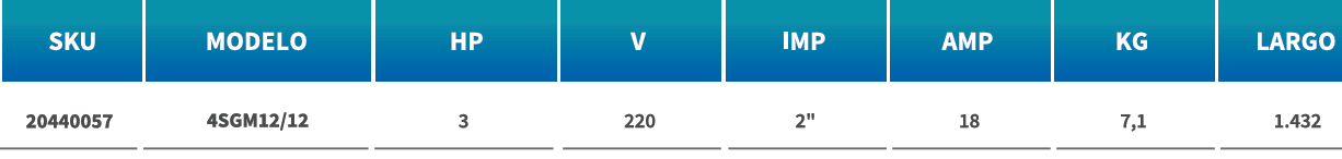 BOMBA POZO PROFUNDO 4" 4SGM12/12 / 3HP IMP 2" 220V