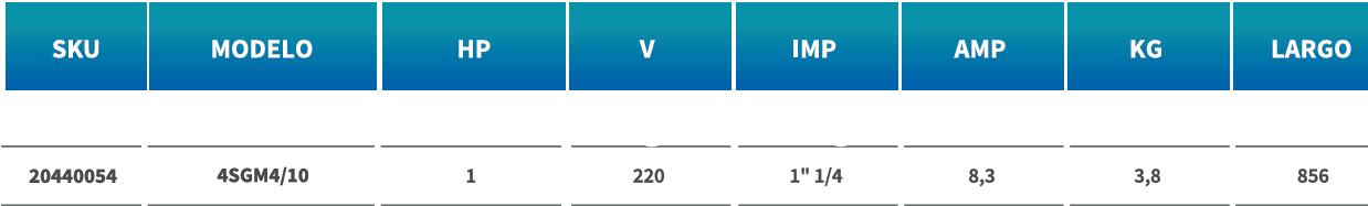 BOMBA POZO PROFUNDO 4" 4SGM4/10 / 1HP IMP 1 1/ 4" 220V
