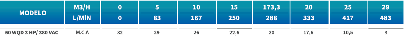 BOMBA SUMERGIBLE C/TRITURADOR 50 WQ/380VAC / 3HP IMP DN50 220V