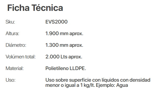ESTANQUE VERTICAL ESTÁNDAR 2000LTS ESTANQUE